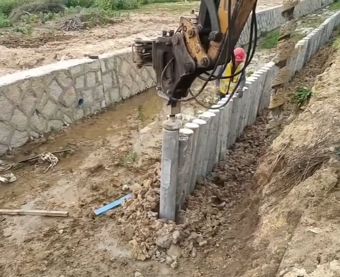- 中打(入土 2 米到設(shè)計深度前 50 厘米):力度可以適當(dāng)加大,但要控制打樁速度(每分鐘 15-20 擊),避免樁體因受力太快開裂;如果遇到軟土層,要放慢速度,防止樁體突然下沉;